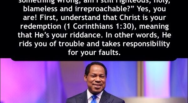 Someone might ask, “How about when I do something wrong, am I still righteous, holy, blameless and irreproachable?” Yes, you are! First, understand that Christ is your redemption (1 Corinthians 1:30), meaning that He’s your riddance. In other words, He rids you of trouble and takes responsibility for your faults. https://wp.me/p9v28c-RR