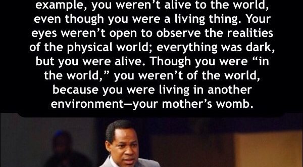 When you were in your mother’s womb for example, you weren’t alive to the world, even though you were a living thing. Your eyes weren’t open to observe the realities of the physical world; everything was dark, but you were alive. Though you were “in the world,” you weren’t of the world, because you were living in another environment—your mother’s womb.