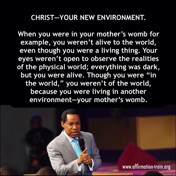 Then, you were born into this world, into a different environment; and when that happened, things changed. You had to live and feed differently now, from how you fed in the womb, because of your new environment. It’s the same thing spiritually. Now that you’re born into Christ, things are different; life is different; principles are different.