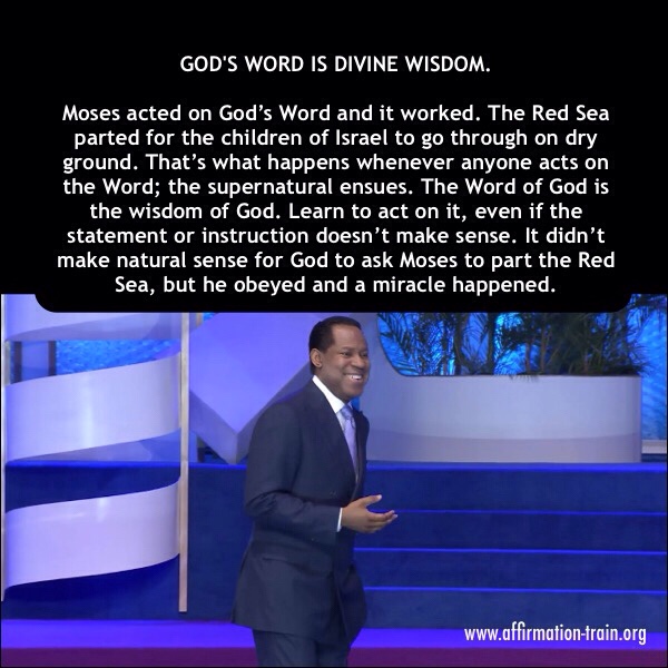 Moses acted on God’s Word and it worked. The Red Sea parted for the children of Israel to go through on dry ground. That’s what happens whenever anyone acts on the Word; the supernatural ensues. The Word of God is the wisdom of God. Learn to act on it, even if the statement or instruction doesn’t make sense. It didn’t make natural sense for God to ask Moses to part the Red Sea, but he obeyed and a miracle happened.
