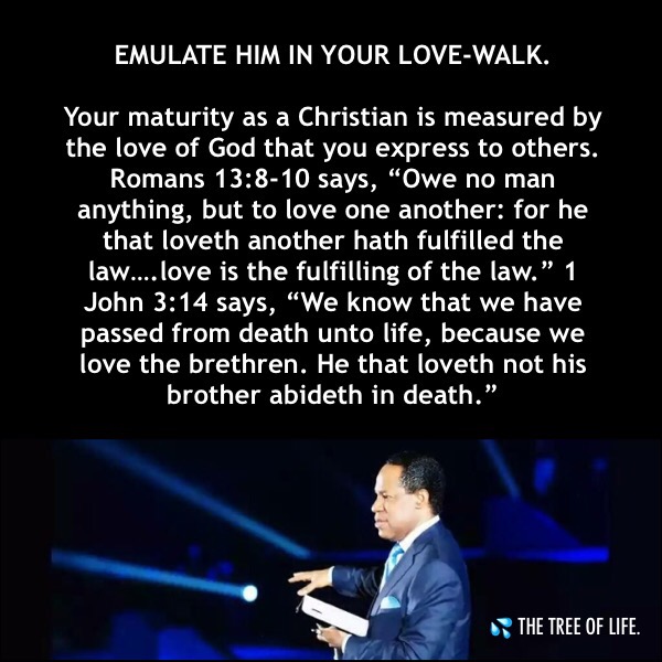 Your maturity as a Christian is measured by the love of God that you express to others. Romans 13:8-10 says, “Owe no man anything, but to love one another: for he that loveth another hath fulfilled the law….love is the fulfilling of the law.” 1 John 3:14 says, “We know that we have passed from death unto life, because we love the brethren. He that loveth not his brother abideth in death.”