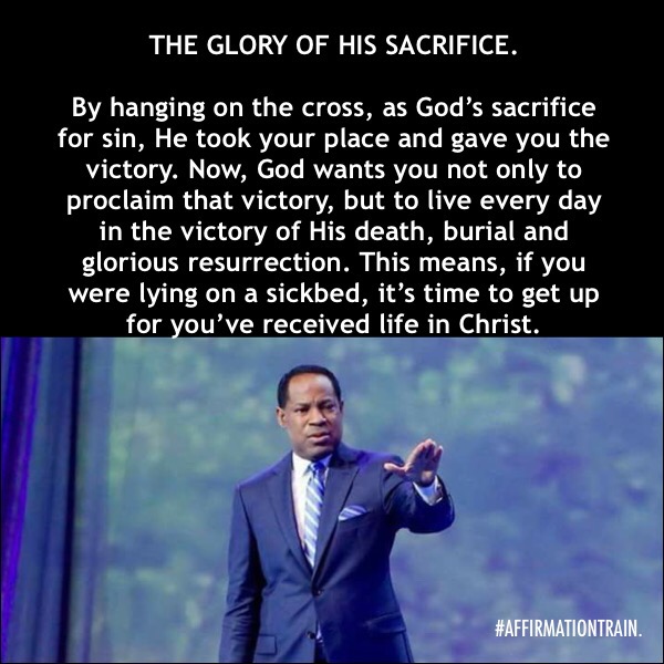 It was God-ordained that Christ should suffer and the result of His suffering be glory, victory, success and prosperity for us all. Therefore, you’re to celebrate what Jesus did for you; He didn’t die for nothing; His vicarious death gave mankind victory over sin and its effects.