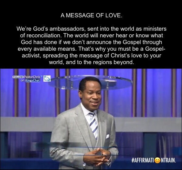 We’re God’s ambassadors, sent into the world as ministers of reconciliation. The world will never hear or know what God has done if we don’t announce the Gospel through every available means. That’s why you must be a Gospel-activist, spreading the message of Christ’s love to your world, and to the regions beyond.