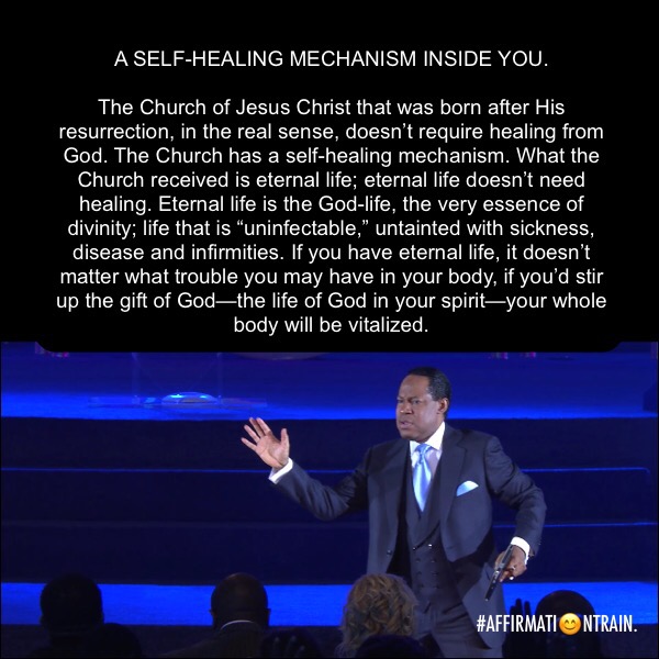 The Church of Jesus Christ that was born after His resurrection, in the real sense, doesn’t require healing from God. The Church has a self-healing mechanism. What the Church received is eternal life; eternal life doesn’t need healing. Eternal life is the God-life, the very essence of divinity; life that is “uninfectable,” untainted with sickness, disease and infirmities. If you have eternal life, it doesn’t matter what trouble you may have in your body, if you’d stir up the gift of God—the life of God in your spirit—your whole body will be vitalized.