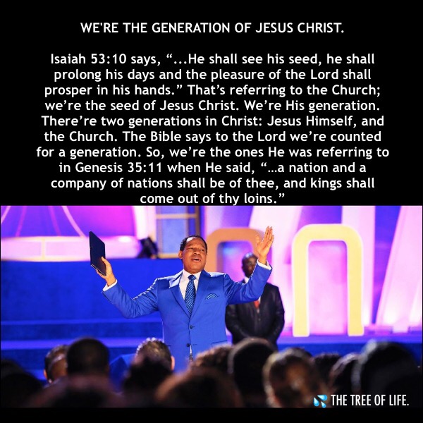 Isaiah 53:10 says, “…He shall see his seed, he shall prolong his days and the pleasure of the Lord shall prosper in his hands.” That’s referring to the Church; we’re the seed of Jesus Christ. We’re His generation. There’re two generations in Christ: Jesus Himself, and the Church. The Bible says to the Lord we’re counted for a generation. So, we’re the ones He was referring to in Genesis 35:11 when He said, “…a nation and a company of nations shall be of thee, and kings shall come out of thy loins.”