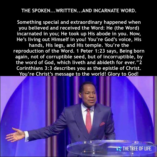 Something special and extraordinary happened when you believed and received the Word: He (the Word) incarnated in you; He took up His abode in you. Now, He’s living out Himself in you! You’re God’s voice, His hands, His legs, and His temple. You’re the reproduction of the Word. 1 Peter 1:23 says, Being born again, not of corruptible seed, but of incorruptible, by the word of God, which liveth and abideth for ever.”2 Corinthians 3:3 describes you as the epistle of Christ. You’re Christ’s message to the world! Glory to God!