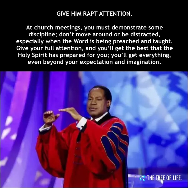 At church meetings, you must demonstrate some discipline; don’t move around or be distracted, especially when the Word is being preached and taught. Give your full attention, and you’ll get the best that the Holy Spirit has prepared for you; you’ll get everything, even beyond your expectation and imagination.