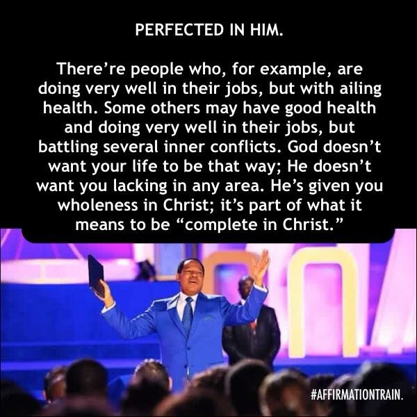 There’re people who, for example, are doing very well in their jobs, but with ailing health. Some others may have good health and doing very well in their jobs, but battling several inner conflicts. God doesn’t want your life to be that way; He doesn’t want you lacking in any area. He’s given you wholeness in Christ; it’s part of what it means to be “complete in Christ.”
