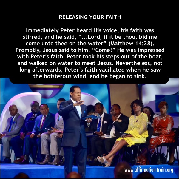 The Bible says, “…beginning to sink, he cried, saying, Lord, save me. And immediately Jesus stretched forth his hand, and caught him, and said unto him, O thou of little faith, wherefore didst thou doubt?” (Matthew 14:30-31). Peter only began to sink when he “looked” at the boisterous wind and waves; the circumstances. Meaning that when you release your faith, you shouldn’t observe circumstances or anything else but God’s Word. Anything is possible. You can do, and have anything you desire if you’d maintain your faith in God’s Word; if you keep your gaze on Jesus. –SEE VIDEO–
