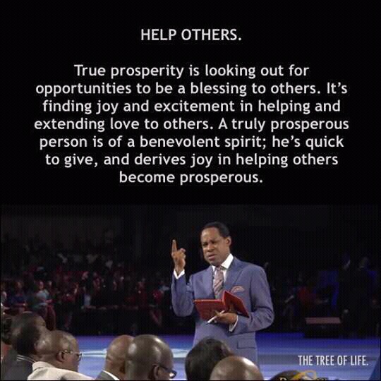 True prosperity is looking out for opportunities to be a blessing to others. It’s finding joy and excitement in helping and extending love to others. A truly prosperous person is of a benevolent spirit; he’s quick to give, and derives joy in helping others become prosperous.