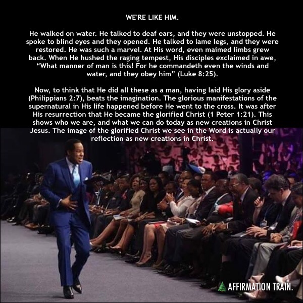 Now, to think that He did all these as a man, having laid His glory aside (Philippians 2:7), beats the imagination. The glorious manifestations of the supernatural in His life happened before He went to the cross. It was after His resurrection that He became the glorified Christ (1 Peter 1:21). This shows who we are, and what we can do today as new creations in Christ Jesus. The image of the glorified Christ we see in the Word is actually our reflection as new creations in Christ.
