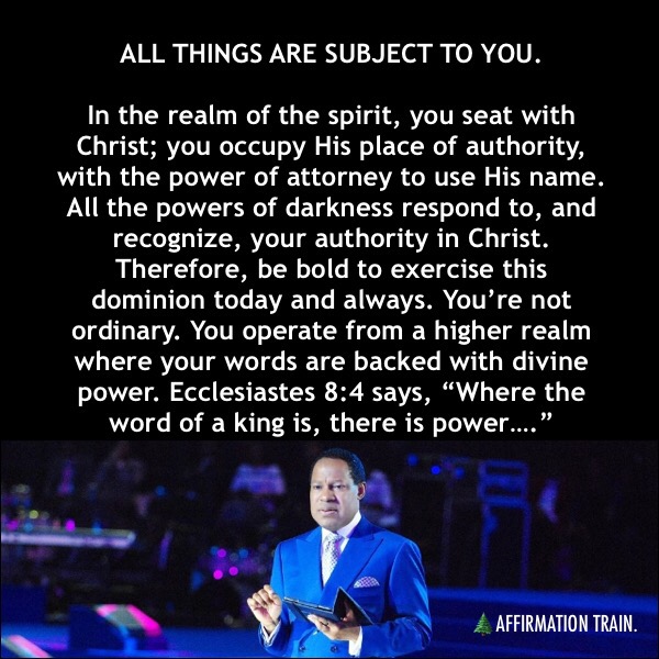 In the realm of the spirit, you seat with Christ; you occupy His place of authority, with the power of attorney to use His name. All the powers of darkness respond to, and recognize, your authority in Christ. Therefore, be bold to exercise this dominion today and always. You’re not ordinary. You operate from a higher realm where your words are backed with divine power. Ecclesiastes 8:4 says, “Where the word of a king is, there is power….”