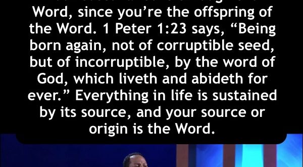 Your sustenance is through the Word, since you’re the offspring of the Word. 1 Peter 1:23 says, “Being born again, not of corruptible seed, but of incorruptible, by the word of God, which liveth and abideth for ever.” Everything in life is sustained by its source, and your source or origin is the Word. -SEE VIDEOS-